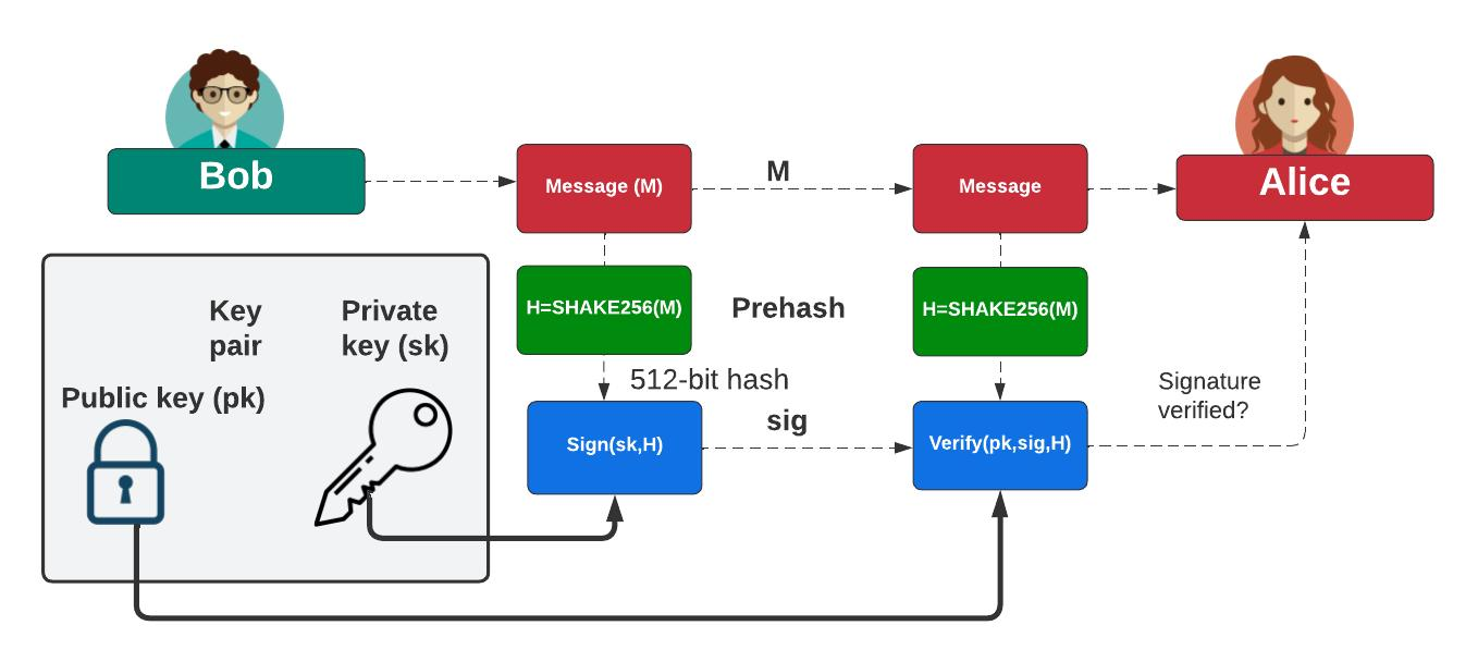 The sender creates a hash of the data and encrypts it using their private key. The receiver can then verify it using the sender’s public key.