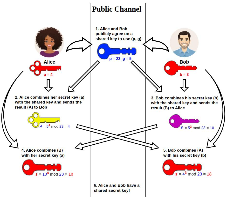 Another concept that caught my attention was the Diffie-Hellman key exchange.